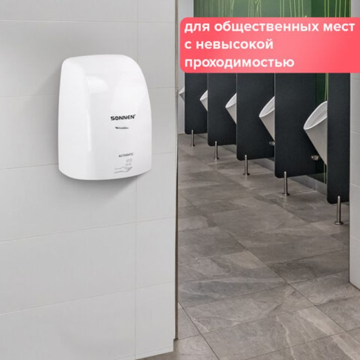 Сушилку для рук SONNEN HD-FL-2009 рекомендуется устанавливать в ванных комнатах/санузлах при расчете одна сушилка на одну раковину.