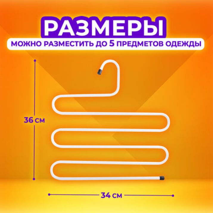Предлагаем универсальную металлическую вешалку, которая поможет организовать пространство и создаст уют в доме. Вешалки для одежды изготовлены из прочного металла. Многоуровневая вешалка для брюк эстетичной изогнутой формы выдерживает до 6 кг благодаря усиленному металлическому профилю. Она не погнется даже под тяжестью зимних штанов или мокрых полотенец. Пластиковые заглушки на концах не позволят соскальзывать одежде с вешалки, а самому аксессуару с перекладины шкафа. Вешалка компактная и не занимает много места - ее размер 34 на 36 см, При этом на одной такой вешалке можно разместить до 5 предметов одежды. Подойдет для брюк, женских и мужских шарфов, широких декоративных шейных платков, галстуков и других аксессуаров гардероба. Вешалку "Змейка" можно использовать как для взрослой, так и для детской одежды.