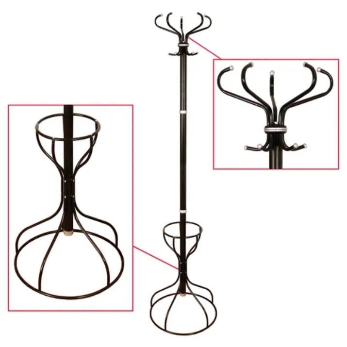 Компактная напольная вешалка-стойка с оригинальной конструкцией держателя для зонтов, идеально впишется в интерьер как офиса, так и дома. Недорогая модель, отличается качественным исполнением и современным дизайном.