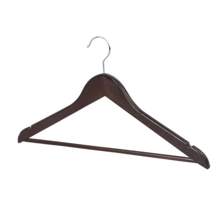 Вешалки-плечики, размер 48-50, КОМПЛЕКТ 5 шт., дерево, перекладина, цвет шоколад, BRABIX "Стандарт", 601162