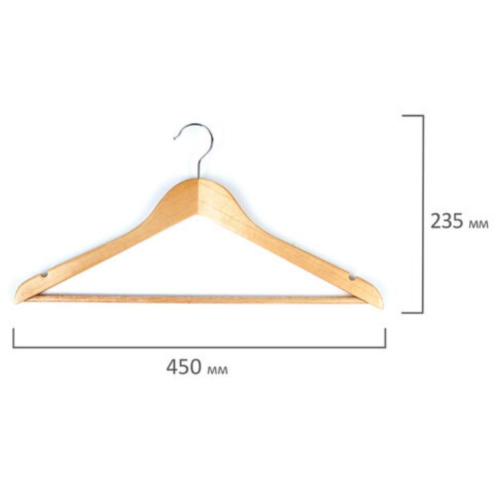 Вешалки изготовлены из натурального дерева. Лакированные, с невыкручивающимся крючком. Предназначены для бережного хранения одежды. Обладают долговечностью и прочностью, не прогибаются под тяжелой верхней одеждой. Эстетичны, отлично вписываются в общий интерьер гардеробной. Размер модели составляет 45 см. 5 штук в комплекте.